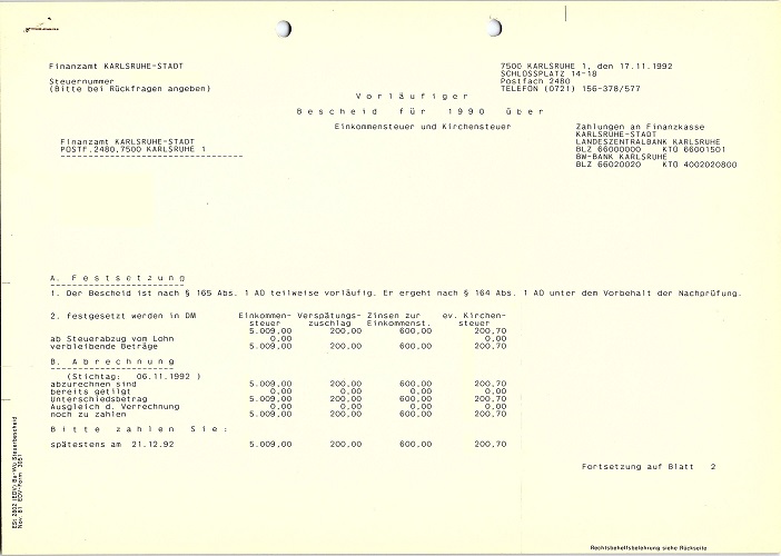 Und auch Steuerbescheide gehören dazu. Hier wird die Adresse und die Steuernummer gelöscht.